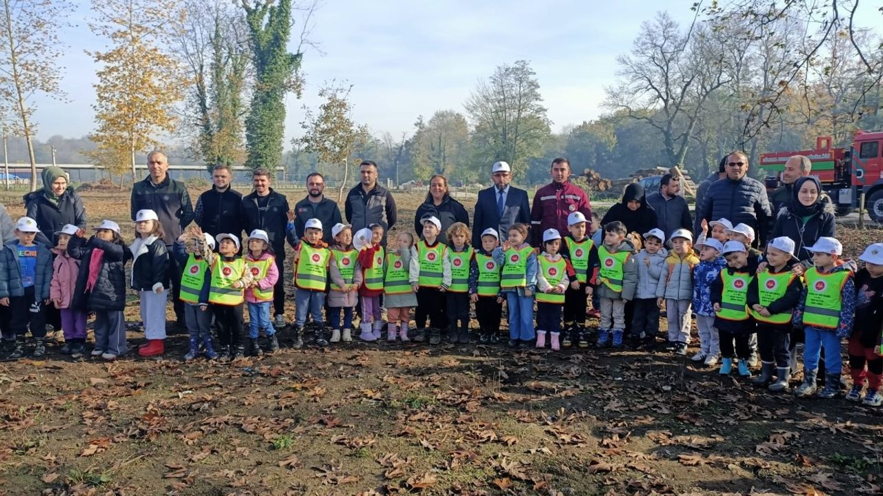 6 yaş Kur'an kursu öğrencilerine ormanların korunması ile ilgili bilgiler aktarılması sonrasında fidanları toprakla buluşturdular.