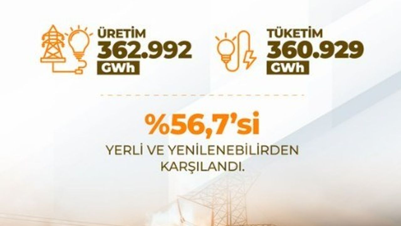 Toplam üretimin yüzde 56,7'sinin yerli ve yenilenebilir kaynaklardan sağlandığını belirten Bakan Bayraktar, 'Türkiye'nin enerjisini Türkiye'nin öz kaynaklarıyla yükseltmeye ve arz güvenliğimizi güçlendirmeye devam edeceğiz' dedi.