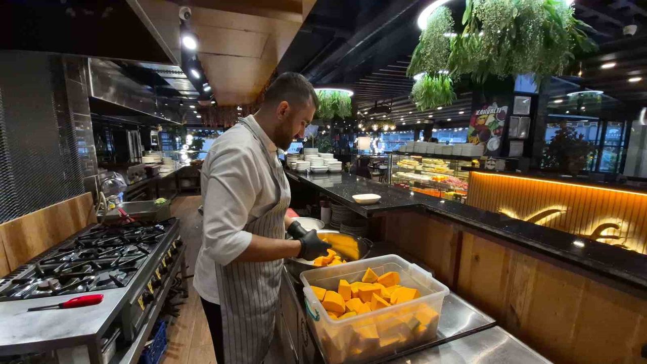 Düzce'nin ödüllü aşçısı Raşit Sorgül, bölgenin coğrafi işaretli kestane kabağıyla hazırlanan kabak tatlısının yapılış sırlarını anlattı. Sorgül, tatlının lezzetine ulaşması için gereken sürenin önemine dikkat çekerek, 'Kestane kabağını temizleyip, ayıklıyoruz. Daha sonra şekere yatırıp yaklaşık 4-5 saat kısık ateşte pişiriyoruz. Kaynatırken sadece tarçın kullanıyoruz' dedi.
