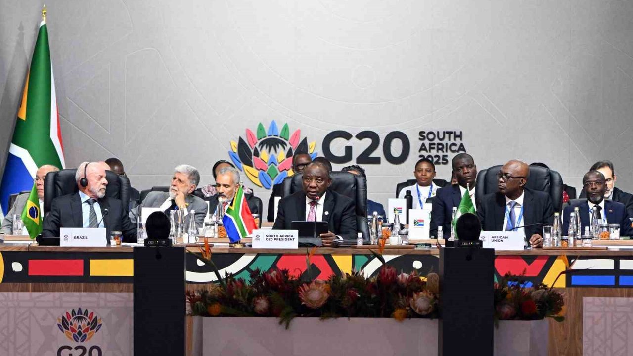 Güney Afrika Cumhuriyeti'nde 2 gün süren G20 Liderler Zirvesi sona erdi. Dünya liderlerinin katıldığı 3 oturumun ardından düzenlenen kapanış oturumunda dönem başkanlığı yapan Güney Afrika Devlet Başkanı Cyril Ramaphosa konuşma yaptı. Ramaphosa, Johannesburg Expo Centre'da düzenlenen oturumda, dünya liderlerine küresel zorluklarla 'birlikte' mücadele etme ve ortak refaha doğru ilerlerken 'kimsenin geride bırakılmamasını' sağlama çağrısında bulundu. Afrika kıtasında düzenlenen ilk G20 zirvesinin küresel öncelikleri tartışmaların merkezine taşıdığını vurgu yapan Güney Afrika Devlet Başkanı Ramaphosa, 'Birlikte, 2030 Sürdürülebilir Kalkınma Hedefleri ve Gelecek Paktı'na yönelik ilerlemeyi hızlandırmalıyız. Dayanışmanın temelini attık; şimdi adaletin duvarlarını ve refahın çatısını inşa etmeliyiz. Hep birlikte ilerleyelim. Toplumun tüm kesimleri arasında kuracağımız ortaklıklar ve ortak insanlığımızı unutmadan, daha güvenli, daha adil ve daha müreffeh bir dünya oluşturabiliriz. Birlikte, kimsenin geride kalmamasını sağlayabiliriz' dedi.