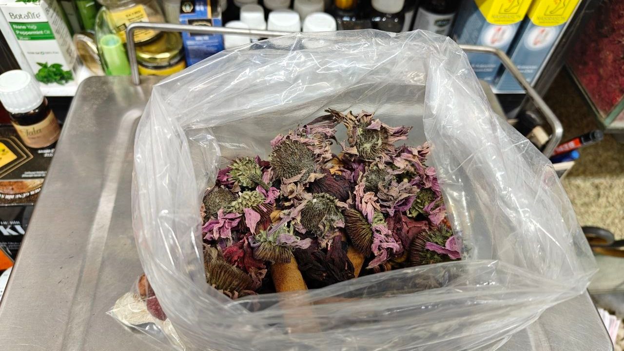 Bitkisel ürünlerin hem geçmeyen öksürüğe hem de grip gibi hastalıklara iyi geldiğini söyleyen Aktar Rahmetullah Sadıkoğlu; 'Vatandaşlarımızdan gelen şikayetlerimizin çoğu geçmeyen kuru öksürük, nezle ve grip gibi şikayetler oluyor. Bu sene de bu hastalıklar çok ağır atlatılıyor. Bunun için de hibiskus, yaş zencefil ve ekinezya kullanırlarsa çok iyi olur. Bunlar C vitamini takviyesi olarak geçer. C vitaminini çoğu zaman portakaldan alabilirsiniz ama hibiskustan, ekinezyadan alınan C vitamini daha yüksek olur. Tamamen bitkisel ve çay şeklinde demlenip tüketilirse çok iyi gelir ve hiçbir şey kalmaz. Ayrıca özel kendi yaptığımız macunlar var. Andız pekmezli, zencefilli, ballı macunlar bunlar. Bunlar geçmeyen kuru öksürüğü anında alır. Bunların da balgam sökücülüğü ve akciğerdeki iltihaplanmalara bire birdir' dedi.