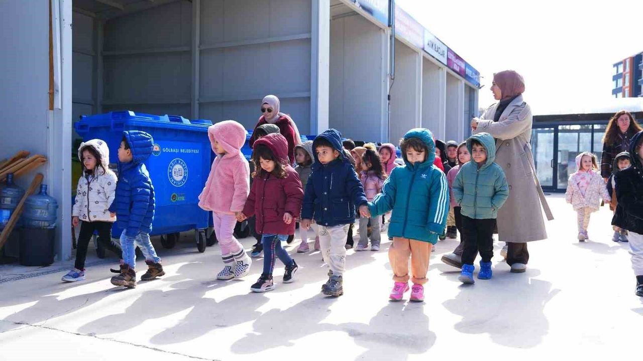 Ankara Üniversitesi Gölbaşı Anaokulu okul öncesi öğrencileri, Gölbaşı Belediyesi Atık Getirme Merkezi'ni ziyaret etti. Merkezde miniklere geri dönüşüm ve sıfır atık konusunda bilgi verildi.