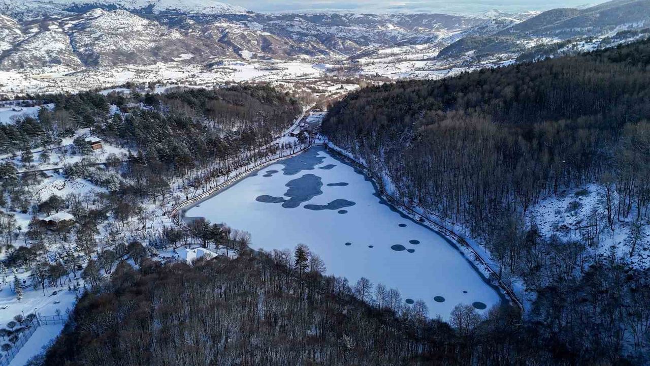 Ankara'nın Çubuk ilçesine yağan kar sonrası Karagöl Tabiat Parkı beyaza büründü.