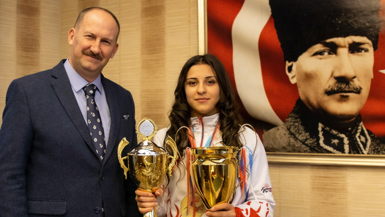Polatlı Kaymakamı Atilla Kantay, Dünya ve Avrupa Şampiyonu Yaren Ecrin Dönmez’i Makamında Kabul Etti