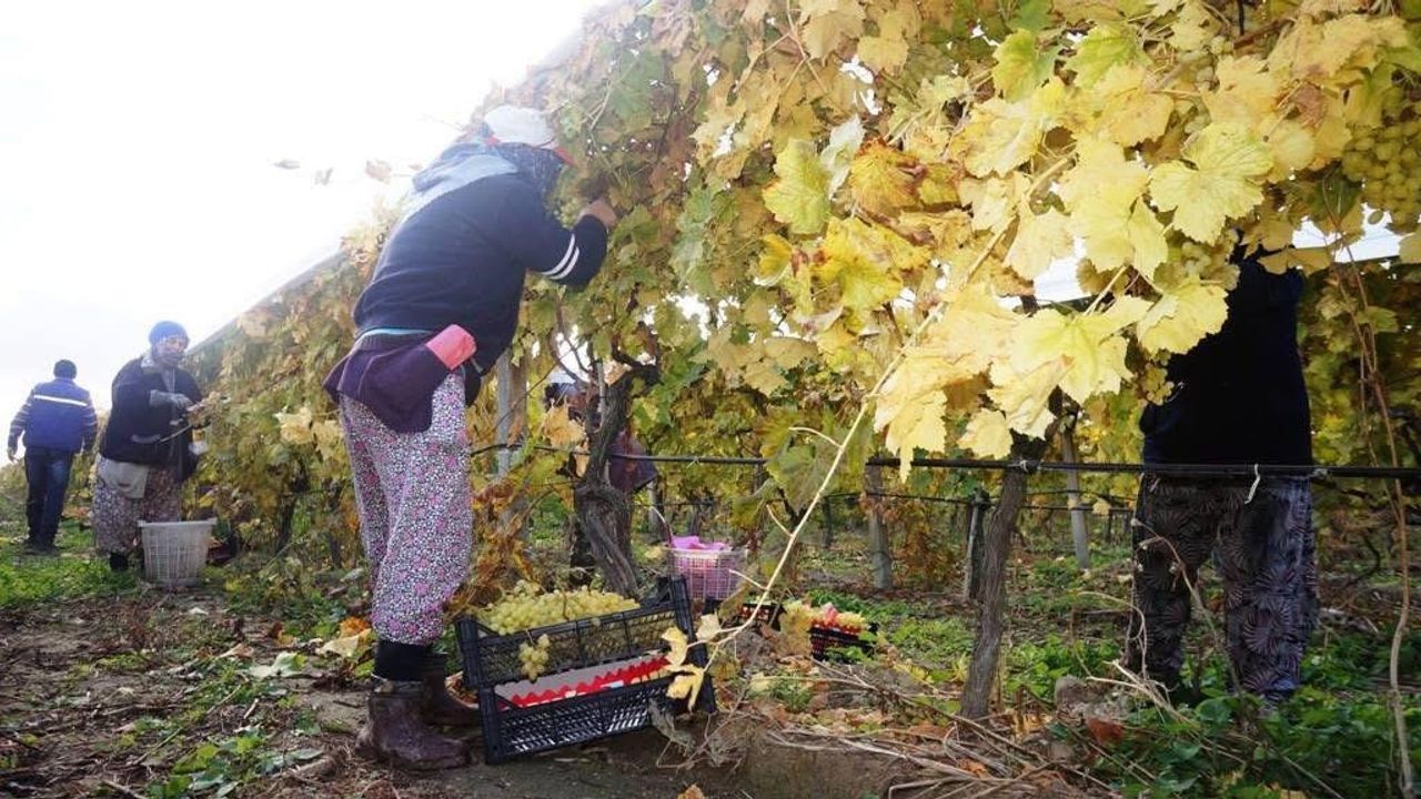 Dünyaca ünlü Sultani çekirdeksiz üzümünün yetiştirildiği Manisa'nın Sarıgöl ilçesinde kış aylarına girilmesine rağmen üzüm hasadı devam ediyor.