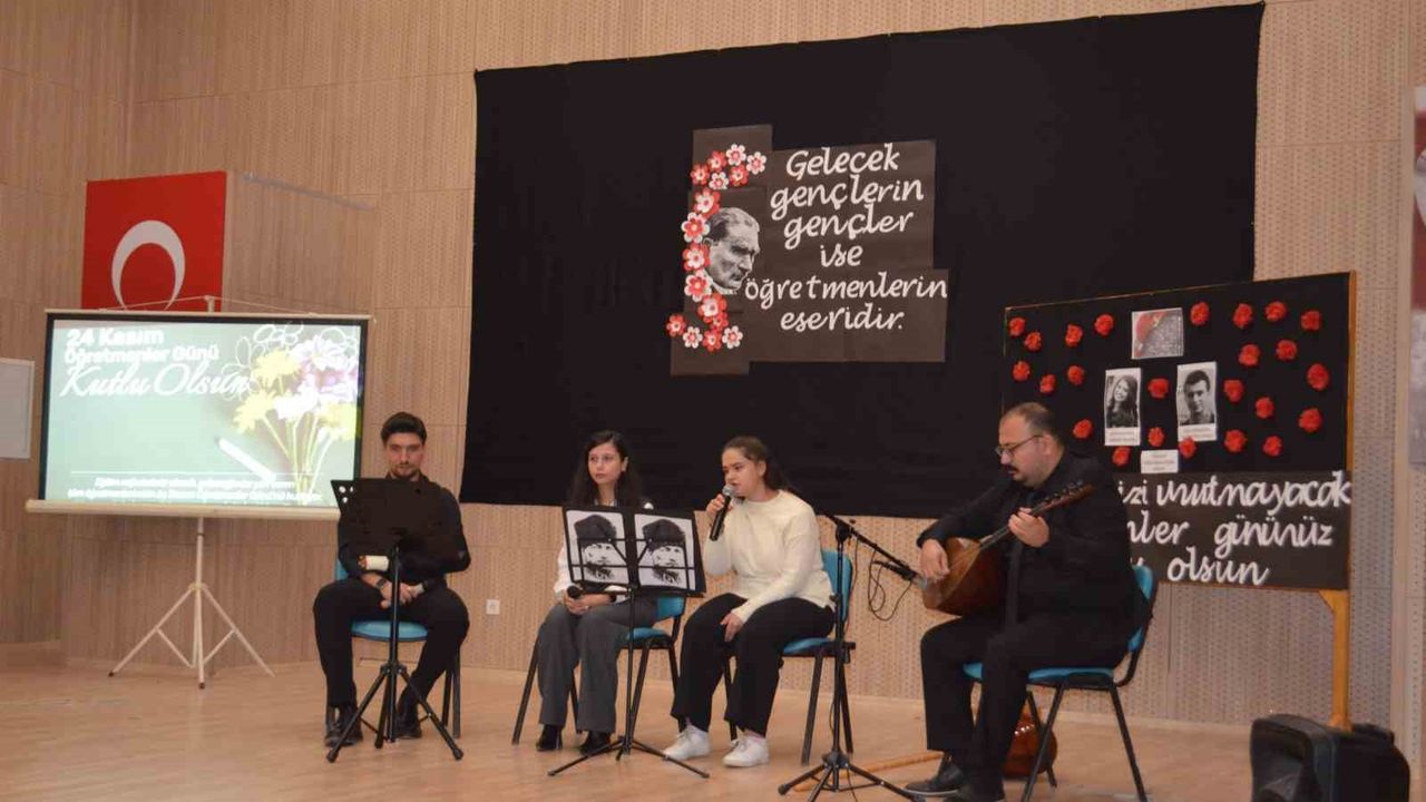 Saygı duruşunda bulunulması ve İstiklal Marşı'nın okunmasının ardından program, Kur'an-ı Kerim tilavetiyle devam etti. Programda günün önemiyle ilgili konuşmayı yapan Fatih Ortaokulu Müdürü Kazım Tokkaş öğretmenlere her alanda ihtiyaç duyulduğunu belirterek, 'Öğretmenlerin eğitim- öğretim hayatının başlangıcından sonuna kadar tesir etmediği hiçbir alan yoktur. Bugünlere kadar gelinen noktada öğretmenlerimizin emekleri vardır. Başöğretmen Gazi Mustafa Kemal'i, öğrencilerini yetiştirmek uğruna şehadete yürüyen öğretmenlerimizi ve bizlere emek veren tüm hocalarımızı saygıyla minnetle yad ediyorum. Öğretmen arkadaşlarımızın ve tüm eğitim camiamızın 24 Kasım Öğretmenler Günü'nü kutluyorum.' diye konuştu.