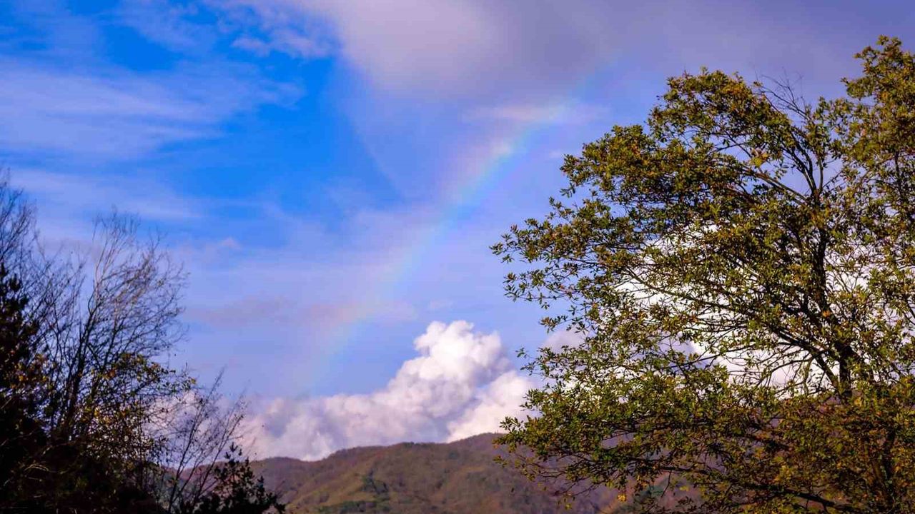 Düzce'de hafta sonu etkili olan sağanak yağışın ardından hafta başında açan güneş ile birlikte gökyüzünde gökkuşağı belirdi. Gökkuşağı havadan görüntülendi.